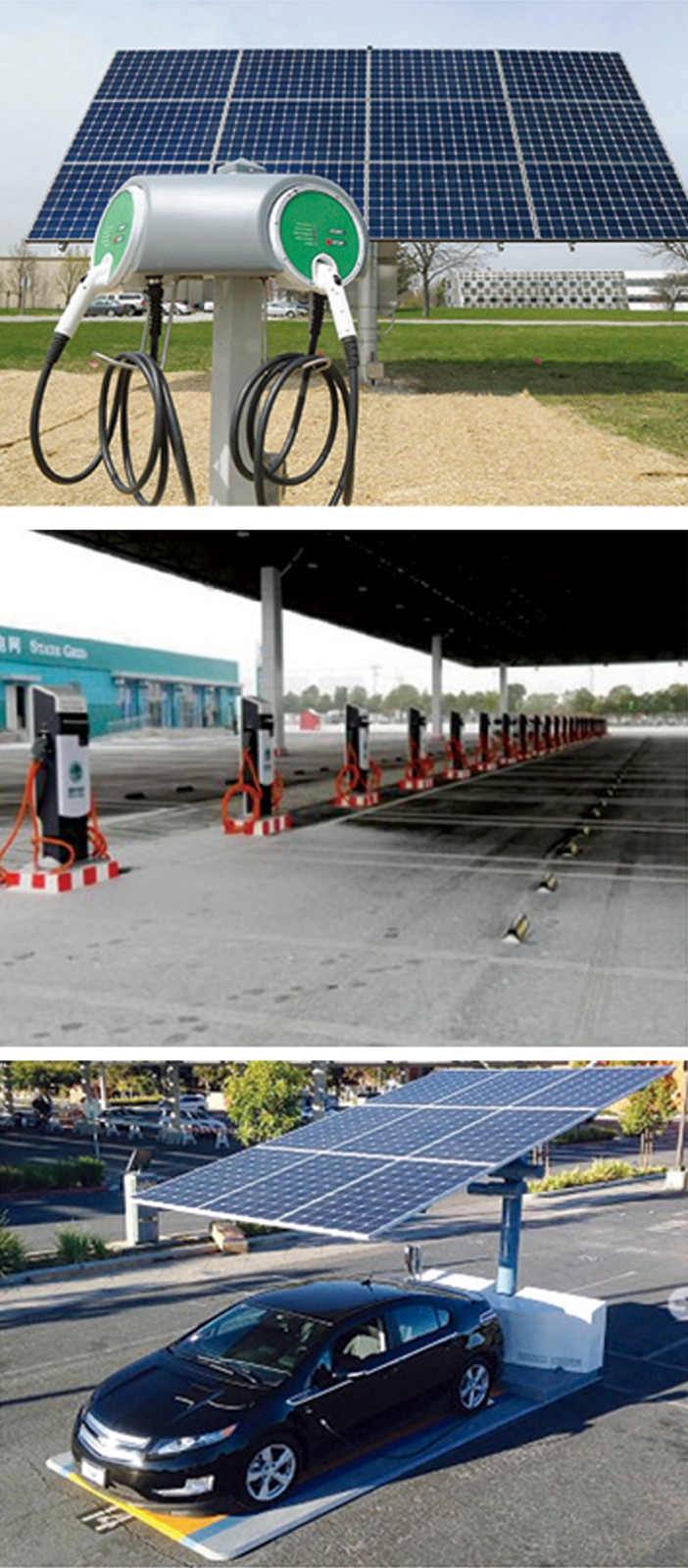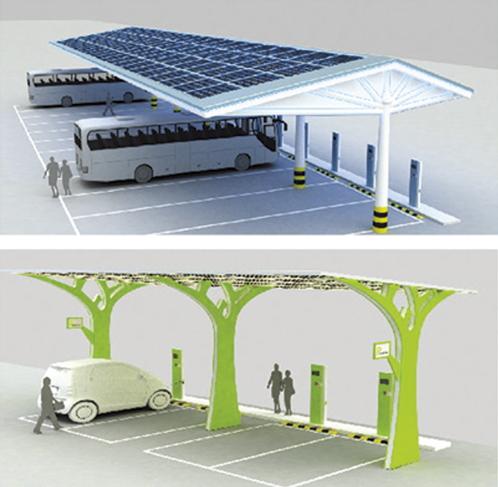 太陽能充電站系統(tǒng)是由光伏組件.逆變器、直流充電機(jī)、直流充電樁、交流充電樁、計(jì)費(fèi)系統(tǒng)、電動(dòng)車用蓄電池等組成。當(dāng)電動(dòng)車安裝有車載充電機(jī)時(shí),可通過交流充電樁對(duì)其進(jìn)行充電。當(dāng)電動(dòng)車沒有安裝車載充電機(jī)時(shí),通過直流充電樁對(duì)其充電。而來不及充電的客戶還可以通過更換蓄電池來繼續(xù)行駛。